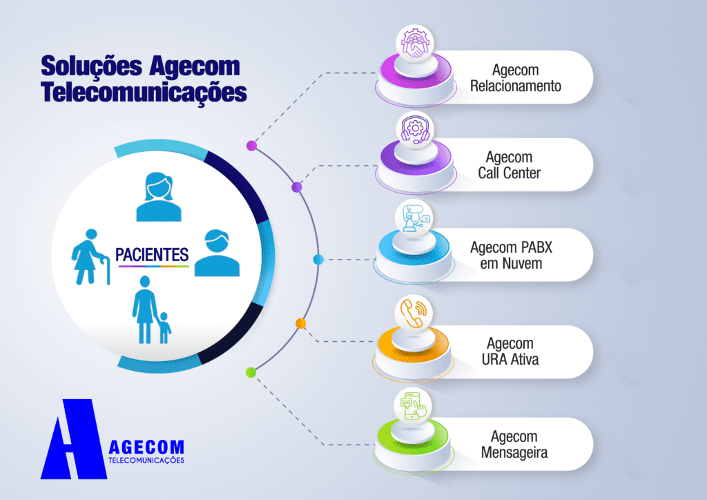 O alto índice de faltas, a dificuldade em manter contato e a demora no atendimento podem prejudicar o sucesso da sua Instituição de Saúde. Com as soluções da Agecom Telecomunicações, você transforma a gestão da comunicação e melhora a experiência dos seus pacientes!